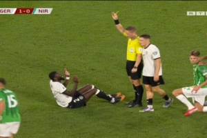 呂迪格被對手撞倒在地,但被吹罰為阻擋犯規(guī),下輪德國主場對陣盧森堡時將累計(jì)黃牌停賽。