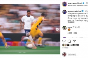 拉什福德社媒曬出比賽照片,配文:“在維拉公園球場(chǎng)拿下重要三分,讓我們更接近目標(biāo)!球隊(duì)表現(xiàn)出色,現(xiàn)在專注于周二的重要比賽(客戰(zhàn)塞爾維亞)!”