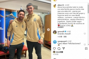 體育資訊9月9日訊 皇馬16歲門將卡斯特勞隨阿根廷國(guó)家隊(duì)訓(xùn)練,他在社交媒體上曬出與梅西的合照。