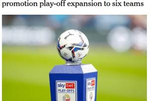 體育資訊09月11日訊 據(jù)The Athletic報(bào)道,EFL考慮英冠升級(jí)附加賽再增設(shè)一輪,參賽隊(duì)伍擴(kuò)軍至6支。
