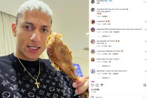 與其他球星發(fā)與女友、妻子或?qū)櫸锖险詹煌?,理查利森發(fā)了自己與食物的合照。