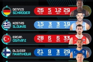 今天,歐錦賽官推曬出了半決賽上的球員高光表現(xiàn)。
