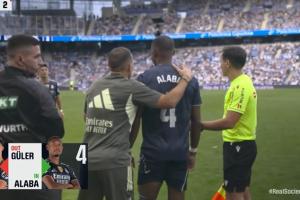 傷停補(bǔ)時(shí)階段,皇馬用阿拉巴換下居勒爾,阿諾德、阿森西奧、加西亞、阿拉巴、米利唐、卡雷拉斯6名后衛(wèi)同時(shí)在場上進(jìn)行防守。