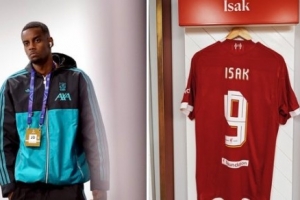 利物浦官方曬出伊薩克伊薩克神情嚴肅的照片,同時也曬出了瑞典前鋒在更衣室里的球衣照片對本場比賽進行預熱。