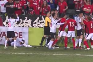 上半場拜合拉木為廣東隊先入一球,脫衣向中國香港球迷看臺慶祝。隨后雙方球員產(chǎn)生沖突。