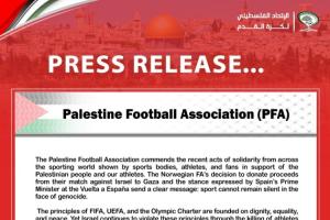 巴勒斯坦足球協(xié)會謹向體育機構、運動員和球迷們近期展現的聲援行動致以敬意,感謝他們對巴勒斯坦人民及運動員的支持。挪威足協(xié)決定將對陣以色列隊的比賽收入捐贈給加沙地區(qū),西班牙首相在環(huán)西班牙自行車賽期間表明的立場,都發(fā)出了明確信號:體育界面對種族滅絕罪行絕不能沉默。