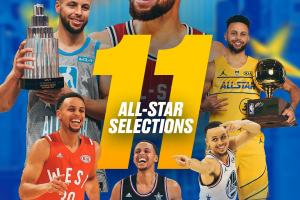 庫里球迷投票排名第2,球員投票排名第2,媒體投票也是第2,三項(xiàng)加權(quán)得分2,最終排名第2,入選全明星首發(fā)!