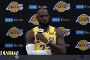 體育資訊9月30日訊 今日,湖人前鋒詹姆斯出席了新賽季的媒體日,并接受媒體采訪。