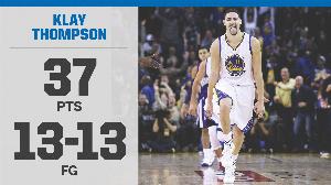 第三節(jié)比賽,克萊打滿12分鐘,13投13中,三分9中9,罰球2中2,單節(jié)得到37分,創(chuàng)NBA歷史個(gè)人單節(jié)得分紀(jì)錄。