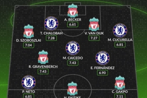 體育資訊10月4日訊 本輪英超焦點戰(zhàn)利物浦對陣切爾西比賽即將打響,數(shù)據(jù)網(wǎng)站W(wǎng)hoscored也盤點了兩隊球員本賽季英超評分最高陣容,具體如下: