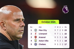 據英超官方統(tǒng)計,2024年10月之后,利物浦首次在比賽周結束時未能處于英超榜首位置。