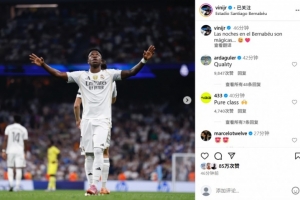 體育資訊10月5日訊 本輪西甲,皇馬3-1黃潛。此役維尼修斯雙響建功,賽后球員更新社媒慶祝勝利。