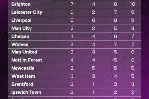 OPTA統(tǒng)計顯示,伯恩茅斯替補本賽季直接參與13球,為球隊贏下17分,均為聯(lián)賽最多。富勒姆(16分)、阿斯頓維拉(13分)和布萊頓(10分)的替補表現(xiàn)也相當(dāng)出色。