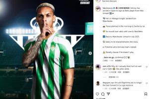 體育資訊01月25日訊 曼聯(lián)攻擊手安東尼即將加盟西甲貝蒂斯,羅馬諾再次進(jìn)行了Here we go,這已經(jīng)是安東尼的第三次Here we go!