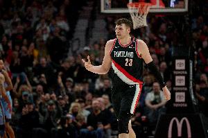開拓者首發(fā)中鋒克林根首節(jié)統(tǒng)治禁區(qū),他7投4中,三分1中1,罰球1中0,得到9分8籃板(5前場板)1搶斷,正負(fù)值+7。