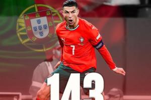 C羅國家隊(duì)生涯225場(chǎng)打進(jìn)143球,繼續(xù)領(lǐng)跑國家隊(duì)歷史射手榜,領(lǐng)先第二梅西29球!