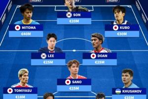 前鋒:孫興慜(2000萬(wàn)歐)、三笘薰(4000萬(wàn)歐)、久保建英(3000萬(wàn)歐)