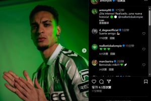 安東尼曬出身穿貝蒂斯球衣的照片,并寫道:忙碌的一天結(jié)束了!開始新的故事!