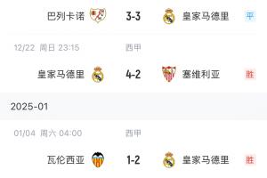 皇馬聯(lián)賽四連勝、近6場(chǎng)不敗,4分優(yōu)勢(shì)領(lǐng)跑。