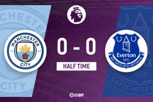 上半場傷停補時2分鐘,半場結(jié)束,曼城暫0-0埃弗頓。