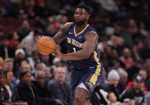 鵜鶘球員錫安上半場在進攻端打得很努力,獨力支撐球隊不讓比賽打花。