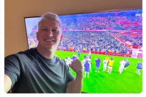 曼聯(lián)舊將、德國(guó)足壇名宿施魏因斯泰格通過(guò)電視觀看雙紅會(huì),賽后他曬出自己在電視機(jī)前的照片,配文:“簡(jiǎn)直太美妙了!加油曼聯(lián),多么精彩的比賽!”