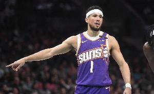 本場比賽雖然球隊獲勝,但太陽球星布克手感不佳,尤其外線完全啞火,打了39分鐘18投5中,三分8中0、罰球8中8拿到18分6籃板7助攻1蓋帽1搶斷,正負(fù)值+7。