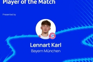 本場(chǎng)比賽拜仁17歲小將卡爾發(fā)揮出色,打進(jìn)球隊(duì)首粒進(jìn)球,賽后他也當(dāng)選歐冠官方評(píng)選出的本場(chǎng)最佳球員。