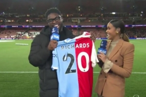 體育資訊10月23日訊 據(jù)《太陽報(bào)》報(bào)道,理查茲收到一件曼城和阿森納縫合的球衣。
