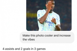 賽后國米官推曬出用ChatGPT整活的照片,他們將博尼慶祝的照片發(fā)給AI要其修圖,并注明要把圖片變得更酷,氛圍感拉起來,AI答復道:“3場比賽2球4助攻,沒法更嗨了?!?/p>