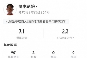 預(yù)期撲救導(dǎo)致少進(jìn)-0.71球(注:通常這一數(shù)據(jù)應(yīng)該是正值)