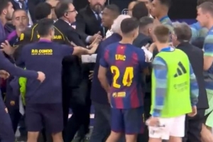 體育資訊10月27日訊 據(jù)西媒eldesmarque報(bào)道,國家德比比賽臨近結(jié)束時(shí),巴薩中場佩德里吃到第二張黃牌被罰下場,這一事件成為了“導(dǎo)火索”,直接引發(fā)了雙方替補(bǔ)席人員的“大規(guī)模混戰(zhàn)”。場面一度失控,以至于安保不得不迅速介入,強(qiáng)行將兩隊(duì)替補(bǔ)席分隔開。