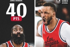 此役,哈登出戰(zhàn)36分鐘,24投12中,三分球9中4,12罰全中爆砍全場最高的40分外加5板9助1斷;鮑威爾出戰(zhàn)35分鐘,投籃23中11,三分8中3,罰球8中8,砍下33分6籃板2蓋帽。
