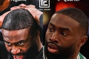 據(jù)此前報道,綠軍球星杰倫-布朗遭遇了“發(fā)際線危機”,本賽季至今已經(jīng)多次將自己的發(fā)際線粉蹭到對手球衣上。