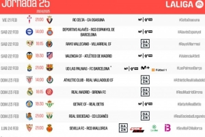 體育資訊1月27日訊 西甲官方公布了西甲第25輪聯(lián)賽開球時(shí)間,北京時(shí)間賽程如下: