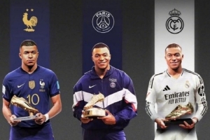 體育資訊11月1日訊 日前,姆巴佩領(lǐng)取2024-25賽季歐洲金靴獎。他是首位在三隊分別拿到世界杯金靴(法國隊)+歐冠金靴(巴黎)+歐洲金靴獎(皇馬)的球員