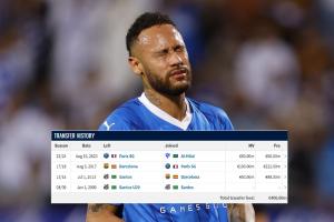 內(nèi)馬爾2013年夏天就頂著天才少年的光環(huán)登陸歐洲,轉(zhuǎn)會(huì)費(fèi)8800萬歐加盟巴薩。2017年,以2.22億歐的天價(jià)轉(zhuǎn)會(huì)費(fèi)加盟巴黎。2023年夏天,內(nèi)馬爾離開巴黎圣日耳曼,9000萬歐轉(zhuǎn)會(huì)費(fèi)加盟利雅得新月,目前這段旅途也已經(jīng)劃上句號(hào)。