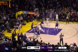 體育資訊11月7日訊 昨天一場(chǎng)NBA常規(guī)賽,湖人在主場(chǎng)以118-116擊敗馬刺。今天,NBA官方公布了最后兩分鐘裁判報(bào)告。有一次誤判。