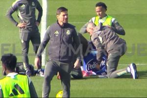 體育資訊11月08日訊 西媒ElDesmarque放出了皇馬訓(xùn)練的視頻,米利唐受傷坐在水箱上,隊(duì)醫(yī)為他纏上繃帶。阿隆索代替他上場(chǎng)完成了團(tuán)隊(duì)訓(xùn)練。