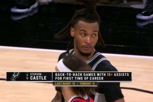 目前,二年級新秀卡斯爾已經得到12分2籃板11助攻2搶斷;據統(tǒng)計,卡斯爾連續(xù)兩場比賽助攻上雙,個人職業(yè)生涯首次。
