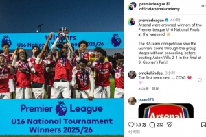 在這項由32支球隊參與的賽事中,阿森納U16在小組賽階段保持零失球紀(jì)錄,最終在圣喬治公園舉行的決賽中2-1擊敗阿斯頓維拉。