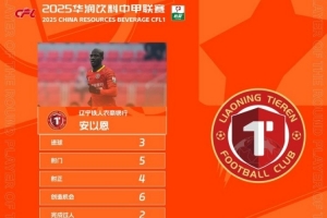 中甲聯(lián)賽第30輪比賽中,遼寧鐵人主場(chǎng)對(duì)陣佛山南獅。上半場(chǎng)第40分鐘,安以恩小角度墊射得分打破僵局。下半場(chǎng)第69分鐘,安以恩推射建功。第76分鐘,安以恩帶球突入禁區(qū)晃過(guò)門將后推射破門,幫助球隊(duì)鎖定勝局。第81分鐘,安以恩挑傳助攻隊(duì)友再下一城。最終,安以恩上演帽子戲法且錄得1次助攻,幫助遼寧鐵人農(nóng)商銀行5-0大勝對(duì)手。