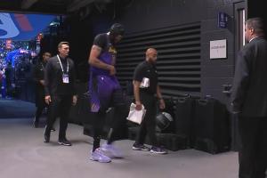 他在第一節(jié)跟隨隊(duì)醫(yī)回了更衣室,離場之前他打了9分50秒,拿到4分2板。