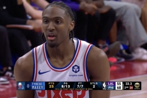 據(jù)統(tǒng)計,這是馬克西本賽季第15次半場轟下20+,聯(lián)盟第二多,僅次于亞歷山大(20次)。