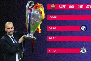 瓜帥生涯帶隊(duì)還從未缺席過(guò)歐冠淘汰賽,最差的成績(jī)是2016-17賽季,帶領(lǐng)曼城止步16強(qiáng)。