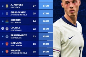 體育資訊11月17日訊 德轉(zhuǎn)盤點了缺席本期英格蘭名單球員身價榜,具體如下: