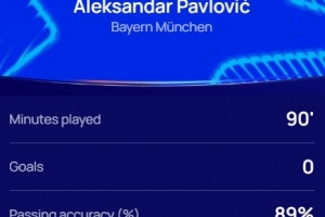 體育資訊1月30日訊 拜仁在本輪歐冠3-1擊敗布拉迪斯拉發(fā),帕夫洛維奇賽后當(dāng)選全場最佳球員。