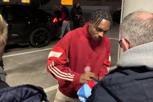 在當(dāng)?shù)貢r(shí)間過(guò)了晚上12點(diǎn)之后,特爾在離開(kāi)球場(chǎng)之前抽出時(shí)間,為球迷進(jìn)行簽名。