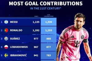 體育資訊11月24日訊 《轉(zhuǎn)會市場》統(tǒng)計了新世紀各項賽事直接參與進球情況,梅西力壓C羅居首。