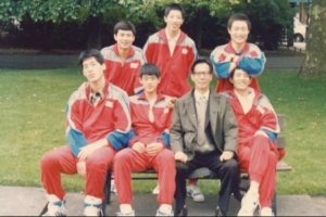 上世紀(jì)八十年代,郭玉佩(前排右二)與國(guó)青男籃出國(guó)比賽。前排右一為中國(guó)籃球名人堂成員鞏曉彬,后排右二為中國(guó)籃球名人堂成員胡衛(wèi)東。